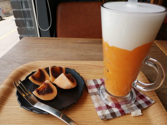 「ホンシ宮」で柿ラテと柿のお餅を
